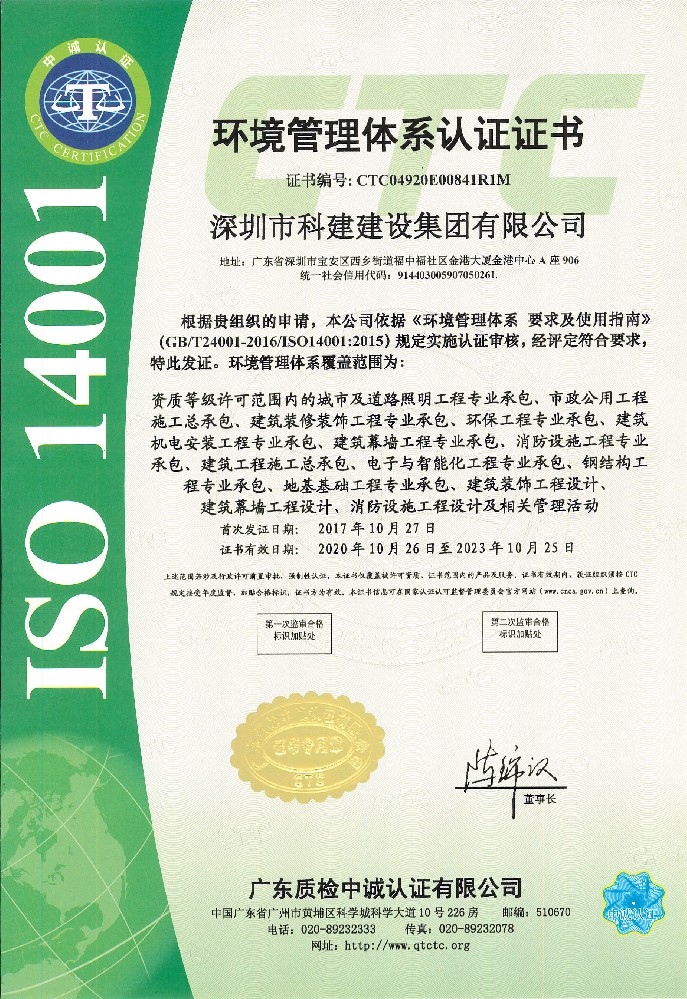 环境管理体系认证证书