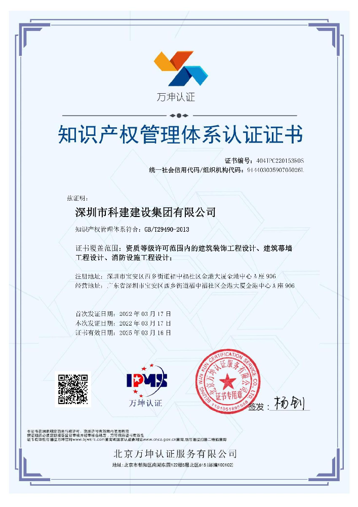 知识产权管理体系认证证书