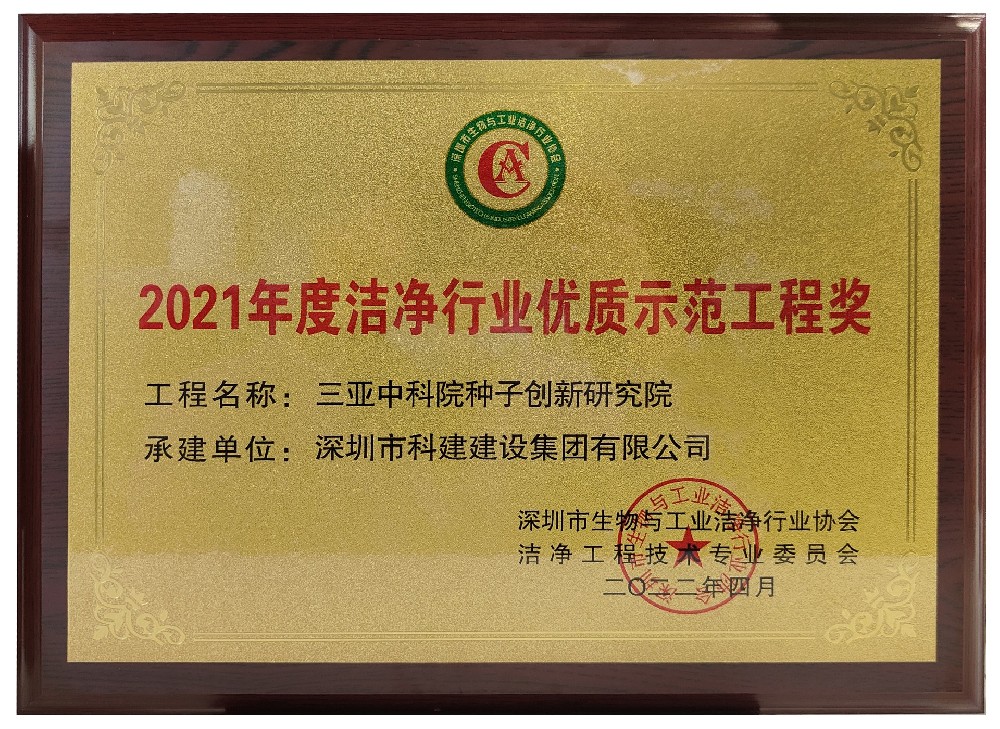 2021年度洁净行业优质示范工程奖