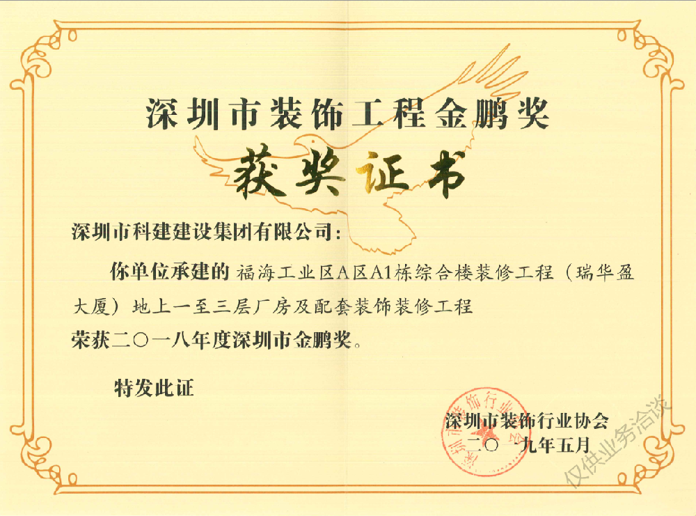 深圳市装饰工程金鹏奖-1