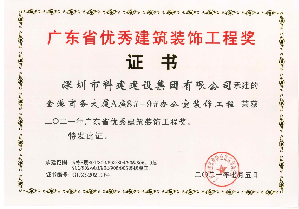广东省优秀建筑装饰工程奖-1